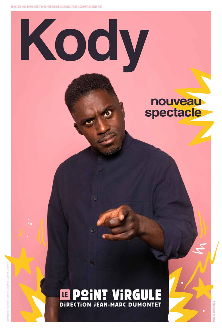 C’est en 2008 qu’il décide de suivre ses rêves d’artiste qu’il est depuis toujours. Il rejoint l’équipe du Kings of Comedy et écrit son premier spectacle “My way”. Kody a la prose dévastatrice. Il mélange le charme et le cynisme avec la précision d’un chirurgien et c’est en parlant de lui, de sa famille congolaise, de son expérience professionnelle, de son quotidien, qu’il plonge le public dans le monde de l’humour glamour. Suivra son second spectacle : « A vendre! »